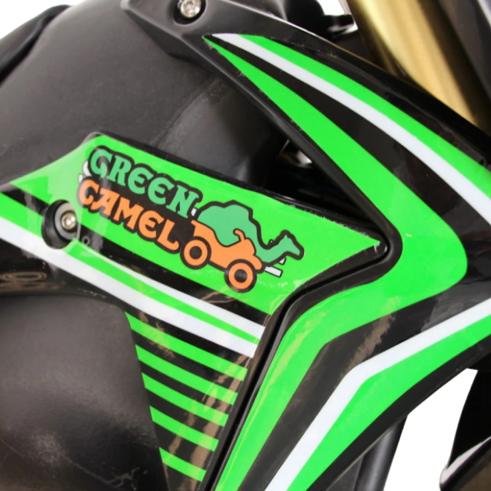 Электромотоцикл GreenCamel Питбайк DB500 в зеленом цвете - это уникальное транспортное средство, которое обеспечит вам незабываемые приключения на дорогах и трассах.
