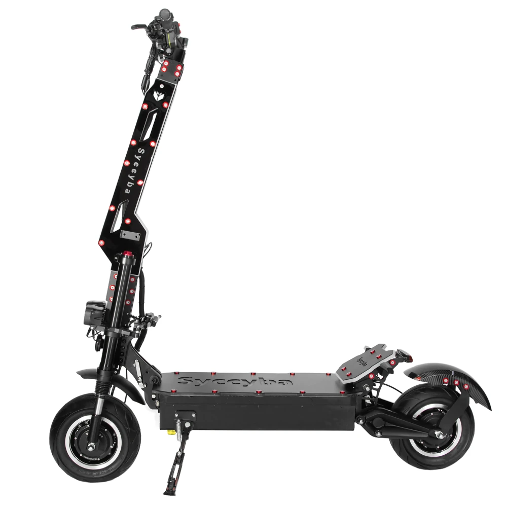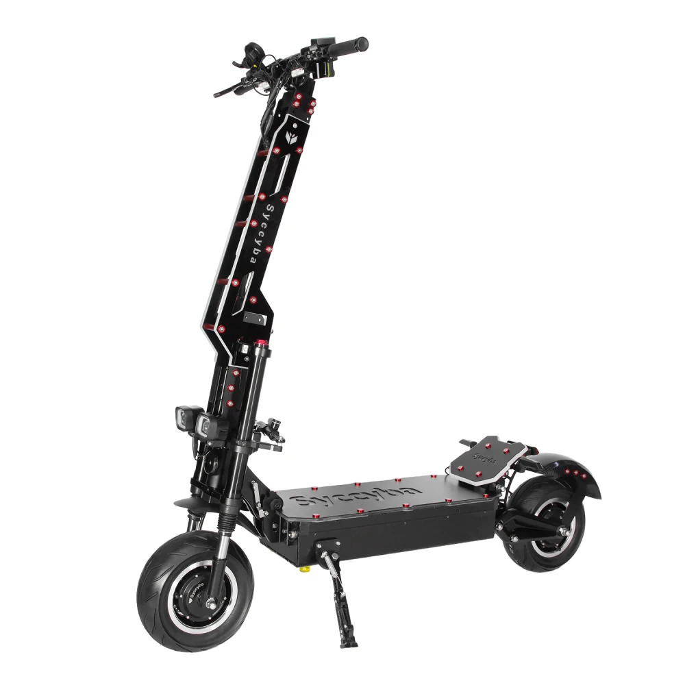 Электросамокат Syccyba Pantera 3.0 — полноприводный внедорожник премиум-класса с пиковой мощностью 10000 Вт, скоростью до 100 км/ч, пробегом до 100 км и нагрузкой до 150 кг, предназначенный для города и бездорожья.​