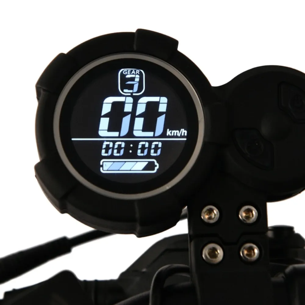 Модель выглядит круто и мощно. При сравнительно небольшом весе рассчитан на максимальную грузоподъемность до 145 кг. Электросамокат подходит активным мужчинам и женщинам, для которых выброс адреналина занимает приоритетные позиции. При параметрах двигателя 3600 Вт и отличной емкости батареи техника способна развивать скорость машины – до 75 км/час. Запас хода составляет 70 км. Широкая нескользящая платформа позволяет разместить 2 стопы одновременно. Случайное соскальзывание стоп и дискомфорт передвижения исключены полностью. Накатистые 11-дюймовые колеса без труда преодолевают небольшие препятствия, подъемы. Непредвиденные ситуации в вечернее время и ненастье в виде внезапной разрядки АКБ исключены благодаря показателям информационного дисплея. Надеемся, вам понравился электросамокат. Предлагаем приступить к оформлению заказа прямо сейчас.