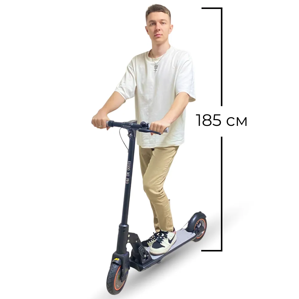 Самокат Kugoo M2 Pro оборудован колесами диаметром 8,5 дюймов, это характерно для линейки легких моделей. Удобный руль, с мягкими, полипропиленовыми рукоятками, платформа покрыта не скользким материалом. При маневрировании ноги не соскальзывают, райдер чувствует себя уверено.