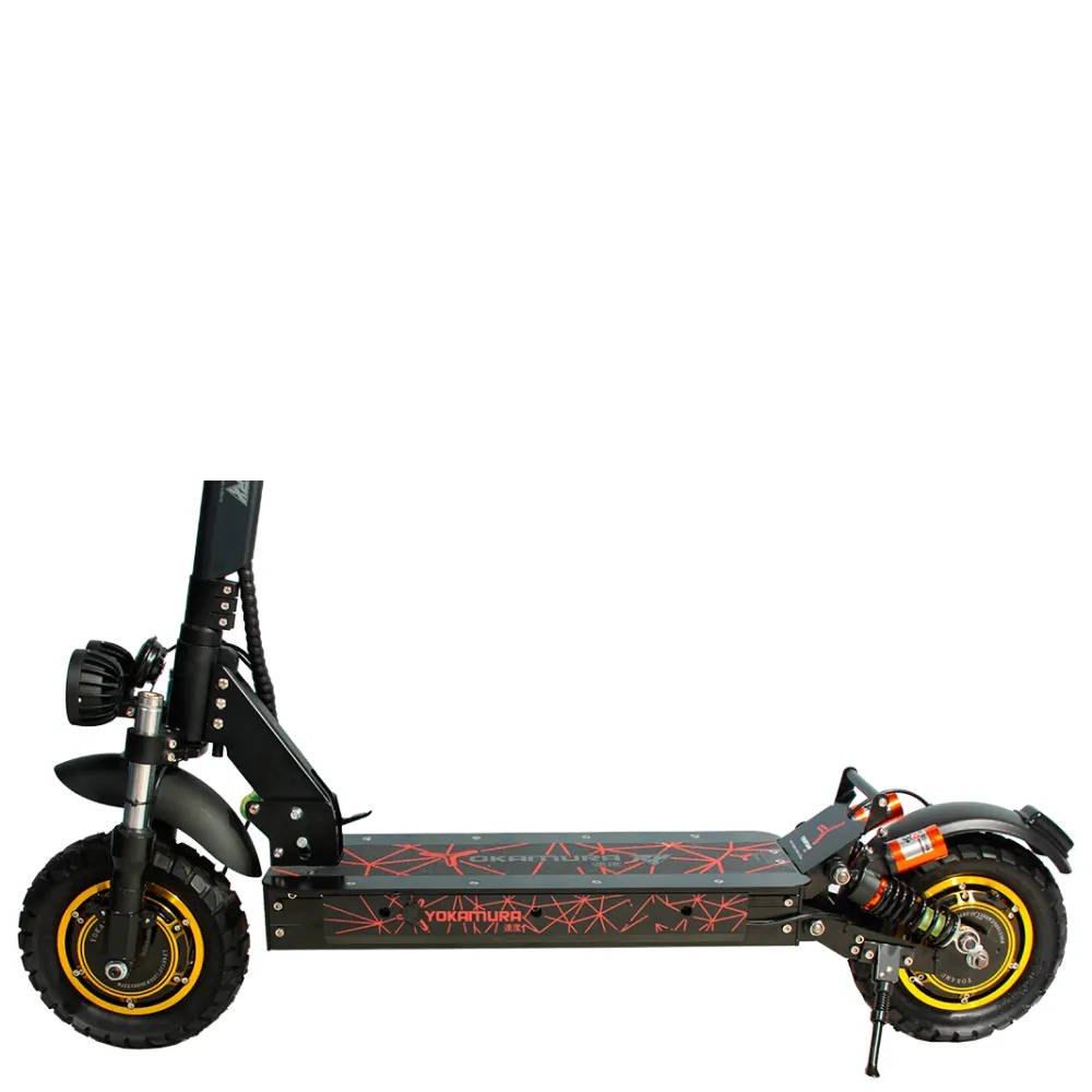 Самокат YOKAMURA RX1 на одном заряде аккумулятора преодолевает расстояние 60 км. Дисковая тормозная система на переднем и заднем колесе позволяет совершать маневры, амортизация делает движение электросамоката плавным даже на не ровной дороге. Производитель предусмотрел внешнее освещение для передвижения в темное время суток.