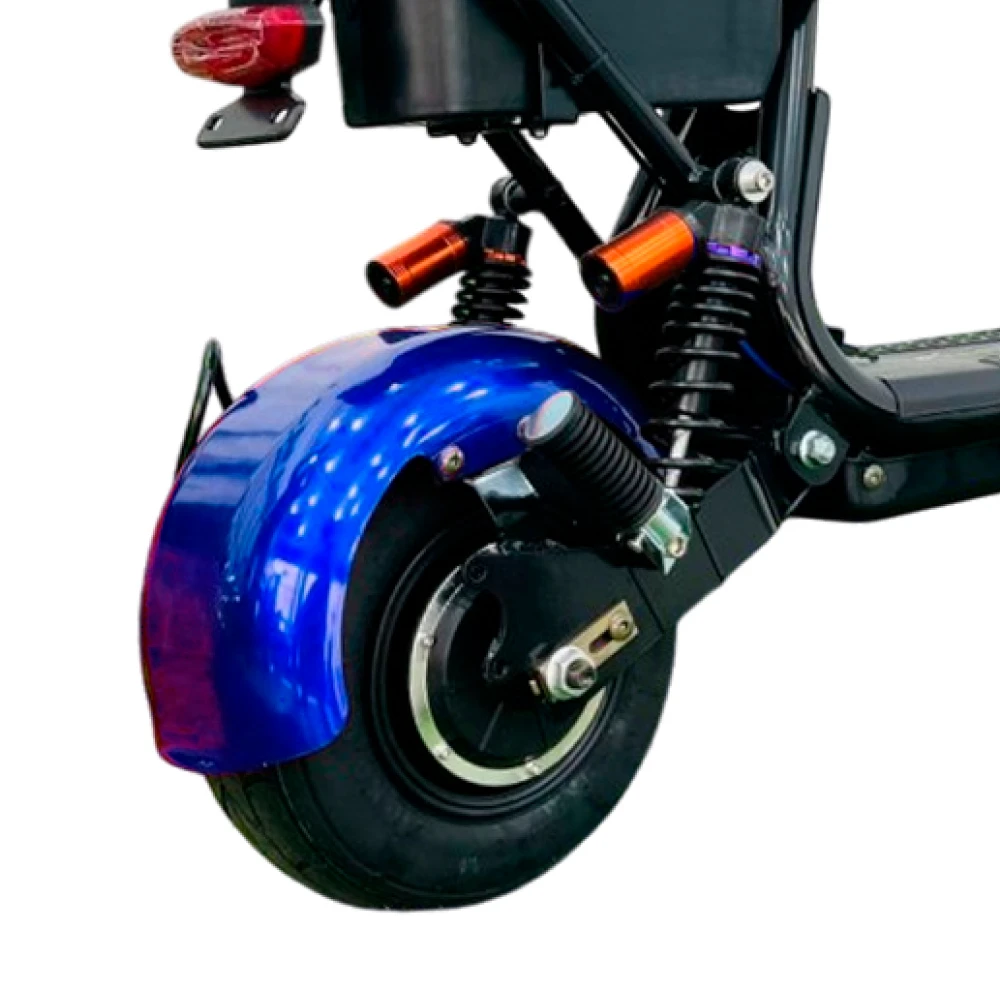 Электроскутер CityCoco GT-X1 PRO Mini синий изготовлен в современном дизайне, максимально наполнен функционалом. Техника оснащена большим мягким водительским седлом и компактным пассажирским. Последнее оснащено спинкой, увеличивающей степень комфорта, снижающая нагрузку на позвоночник при езде на дальние расстояния.  Широкая прорезиненная платформа для ног увеличивает степень комфорта. Купить электроскутер по демократичной стоимости предлагает наш интернет-магазин.
