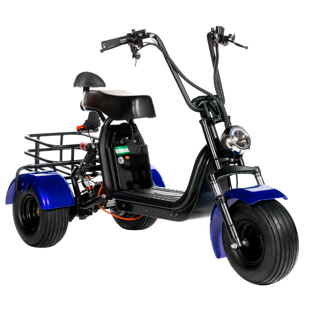 CityCoco GT X5 Trike в синей расцветке - это потрясающий электроскутер, который отличается высокой производительностью, устойчивостью и продуманным дизайном. Скутер с тремя колесами обеспечивает максимальную устойчивость и безопасность во время езды.