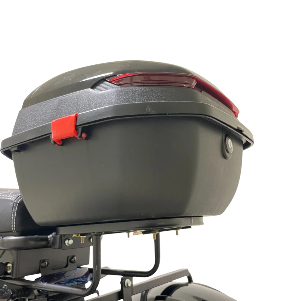 Багажник с кофром и корзиной идеально подходит для перевозки вещей, а светодиодное освещение, включая поворотники и задний стоп-сигнал, делает вас заметным на дороге.
