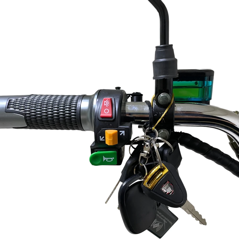 Электроскутер оснащен двойным сиденьем, что делает поездки комфортными как для водителя, так и для пассажира. Бортовой LED-дисплей выводит всю необходимую информацию: скорость, пробег и уровень заряда. Три режима езды позволяют подстроить скутер под ваши потребности, будь то экономичная поездка или максимальная скорость.