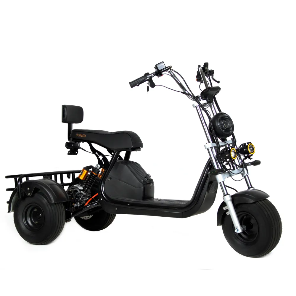 Электроскутер IKINGI X1 PRO TRIKE — это мощное и стильное транспортное средство для городских поездок. С его впечатляющим пробегом на одном заряде до 40-45 км и максимальной скоростью 50-55 км/ч, вы сможете быстро и удобно перемещаться по городу. Мощный двигатель 1000W и емкость аккумулятора 23 Ah обеспечивают продолжительное и надежное использование.Скутер оснащен гидравлическими дисковыми тормозами, которые гарантируют надежное торможение в любых условиях. Задний привод и напряжение 48 В обеспечивают отличную динамику и устойчивость на дороге. Большая передняя фара и стробоскопы повышают видимость и безопасность в темное время суток.Передние и задние амортизаторы делают поездку максимально комфортной, сглаживая неровности дороги. Формат скутера CityCoco с большой платформой для ног, внутри которой находится аккумулятор, обеспечивает устойчивость и удобство. IKINGI X1 PRO TRIKE — это идеальный выбор для тех, кто ценит сочетание мощности, стиля и комфорта в одном электроскутере.