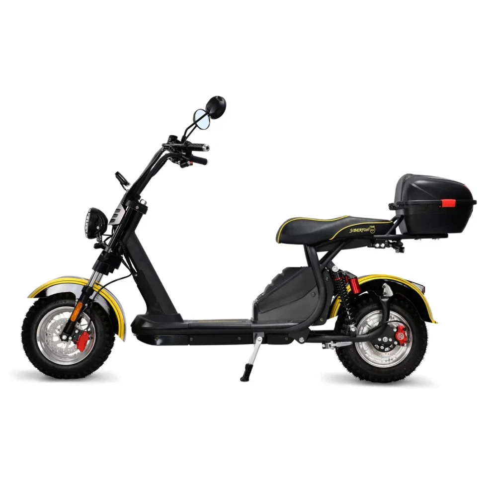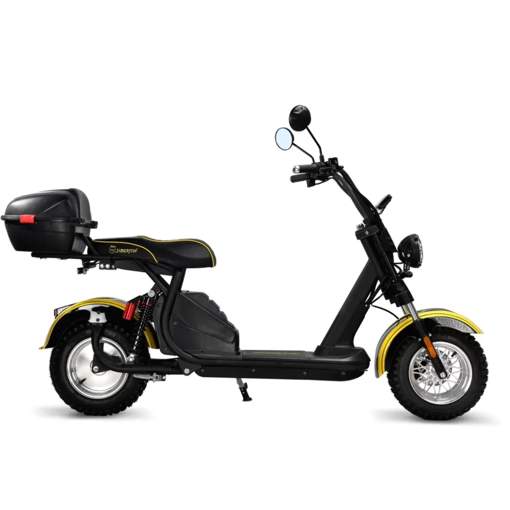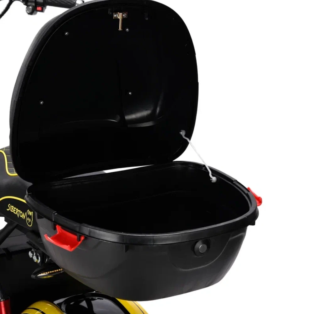 Электроскутер Siberton PRO – это современное средство передвижения, сочетающее в себе надежность, мощность и продуманный дизайн. Каркас выполнен из высококачественной стали, что гарантирует долговечность и устойчивость даже при интенсивной эксплуатации в городских условиях. Благодаря этому электроскутер демонстрирует оптимальный баланс между прочностью и весом, составляющим всего 75,6 кг, что обеспечивает удобство в управлении и транспортировке.С максимальным запасом хода до 60 км на одном заряде устройство позволяет уверенно преодолевать городские маршруты, а также совершать более длительные поездки, при условии благоприятных погодных условий и равнинного рельефа. Под капотом модели находится мощный двигатель мощностью 2500 W, который в сочетании с Li-ion аккумулятором (21 Ah, 60 V) обеспечивает динамичное ускорение и стабильную работу в любых условиях. Полная зарядка занимает около 7 часов, что позволяет быстро вернуть электроскутер в строй после использования.Для безопасности и комфорта предусмотрена современная дисковая гидравлическая тормозная система, обеспечивающая быстрый и надежный отклик при экстренных ситуациях. Электроскутер оборудован надежными 10-дюймовыми колесами, что в сочетании с клиренсом в 21 см способствует преодолению неровностей дороги и обеспечивает устойчивость на различных покрытиях.Дополнительное оснащение включает поворотники и сигнализацию, что значительно повышает безопасность на дорогах, а специально разработанная подвеска – с масляными амортизаторами спереди и комбинированной масляно-пружинной системой сзади – гарантирует плавное и комфортное движение даже по неровным дорогам. Современные габариты и продуманная комплектация делают Siberton PRO идеальным выбором для активных пользователей, ценящих комфорт, мощь и высокую технологичность в одном устройстве.
