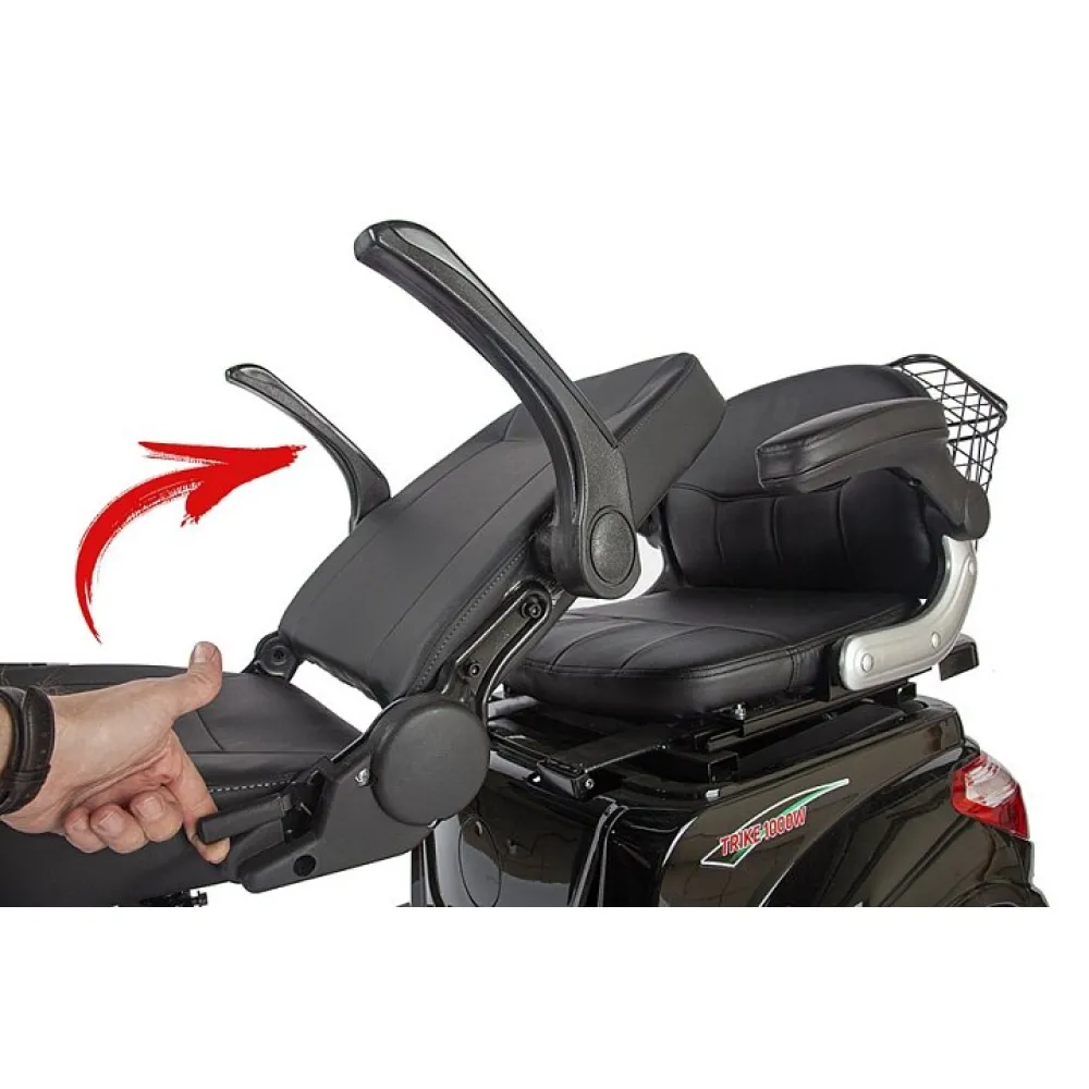 Трицикл оборудован вместительными комфортабельными сиденьями. Грузоподъемность составляет 130 кг при сухом весе 80 кг.