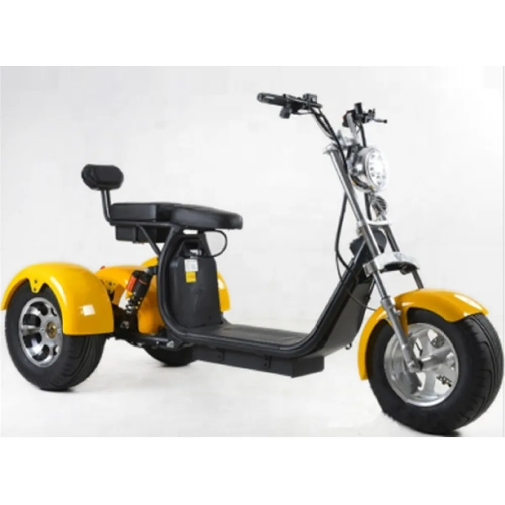ЭЛЕКТРОСКУТЕР WS-PRO ТРИЦИКЛ CITYCOCO 2000W, 60В 20AH Желтый – трехколесная модель оснащена необходимым для комфортной езды. Технические характеристики позволяют преодолевать препятствия и большие расстояния. Модель рассчитана на 2 места, обустроена комфортным мягким сиденьем для водителя и пассажира. Второе имеет удобную спинку, гарантирующую удобство, не допускающую утомление пассажира. Купить товар выгодно, по приемлемой стоимости предлагает интернет-магазин.