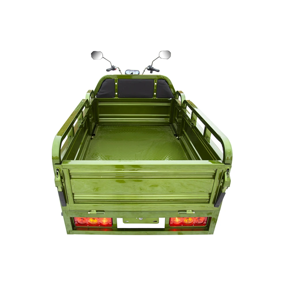 Техника изготовлена из высокопрочного материала, долго сохраняющим первоначальные характеристики при эксплуатации. Специальное покрытие надежно защищает от действия погодных явлений и механических повреждений. Низкий шум при поездке допускает использование грузового электротрицикла в складских помещениях. Техника оснащена двигателем мощностью 800 Вт, свободно развивает скорость 25 км/час, пробег на одном заряде составляет 50 км. Модель надежна и устойчива, производитель исключил возможность случайного опрокидывания. Широкий кузов позволяет перевозить грузы массой до 200 кг.