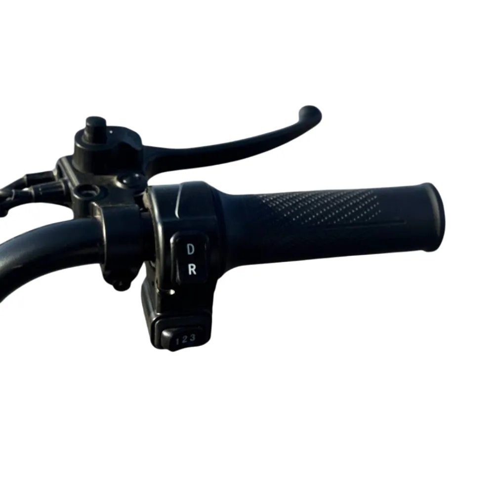 • Литий-ионный аккумулятор емкостью 60V 23Ah гарантирует запас хода до 50 км на одном заряде, что удобно для длительных поездок без частой подзарядки.