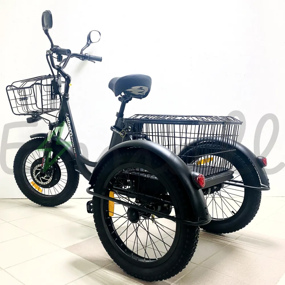 ТРИЦИКЛ ELTRECO PORTER FAT 500 UP! – это современный трехколесный грузовой электротранспорт. Оснащен мощным электродвигателем в 500W, устойчивый и надежный в езде. С ним можно работать на даче, в саду, использовать в поездках по магазинам или для перевозки небольших грузов. Он подходит даже для обычных велопрогулок.