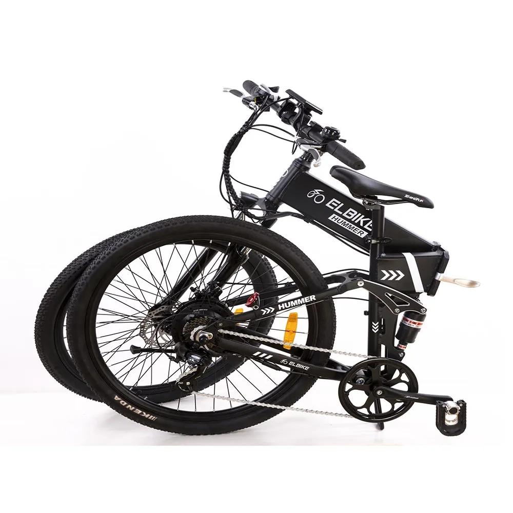 Электровелосипед ELBIKE HUMMER VIP – мощная модель, которой под силе и городские дороги, и бездорожье с его преградами. В наличии большие 26-дюймовые спицевые колеса и двойная подвеска. Мотор встроен в заднее колесо и имеет мощность в 500ватт. Аккумулятор скрыт в раму, его емкость – 10,5 ампер, что позволяет проехать до 35 км без подзарядки.