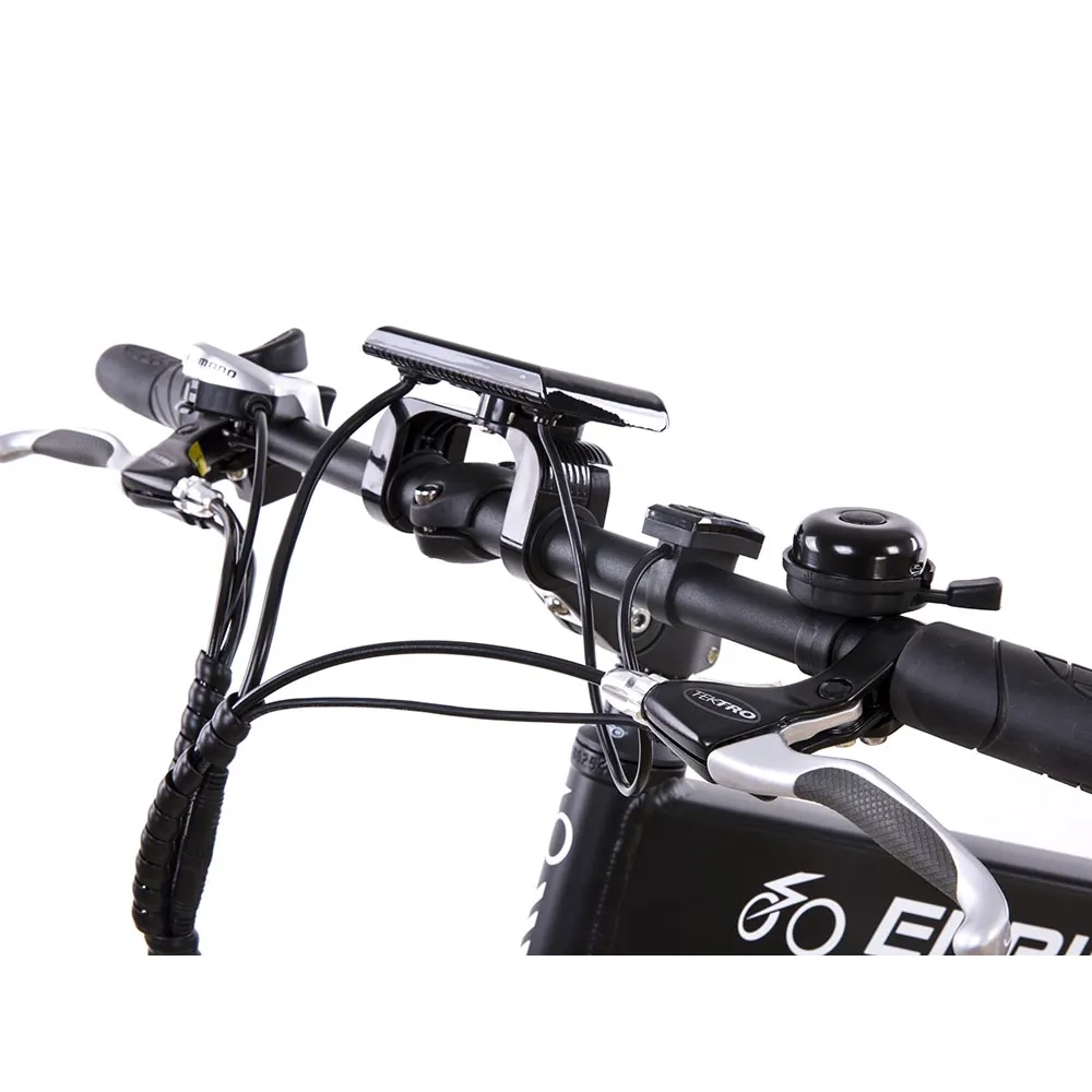 Дисковые тормоза Tectro механического вида. Есть 7 переключений скоростей. Кроме электрических скоростей предусмотрены механические скорости.  Снабжен функциональном компьютером LCD. Главное преимущество модели – компактность. Электровелосипед можно полностью сложить для переноса и хранения.