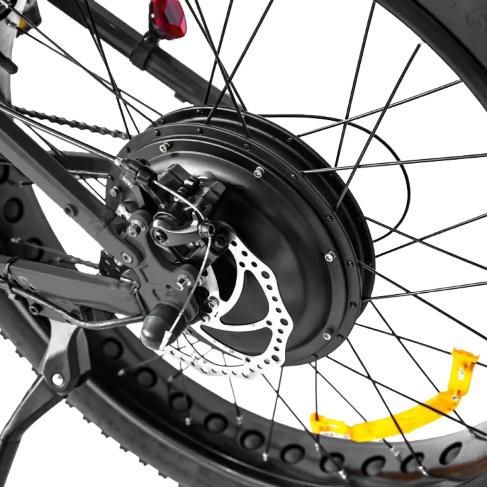 Удобная половинчатая ручка газа. Благодаря мощному электромотору и емкой 13 амперной батарее (48В А*ч) техника развивает скорость до 45 км/час и преодолевает на оной подзарядке до 75 км пути. Увеличить пробег можно за счет перехода на режим педалирования. Обустройство модели светодиодной фарой, информационным ЖК-дисплеем увеличивает степень безопасности ездока в ночное время и непогоду. Для покупки электрофэтбайка сейчас предлагаем связаться с менеджером интернет-магазина.