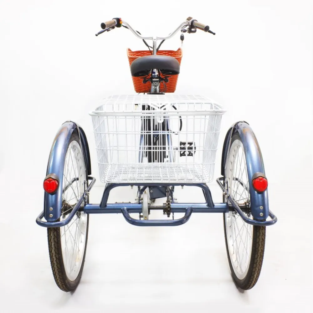 Электровелосипед GreenCamel Трайк-24 (R24 500W 48V10Ah) синий – прогулочная грузовая модель стала лидером продаж этого сезона. Техника привлекает необычным дизайном: низкая рама, три колеса, светодиодная фара делают движение удобным и безопасным. Купить электровелосипед по разумной стоимости, воспользоваться преимущественными характеристиками предлагает наш интернет-магазин.