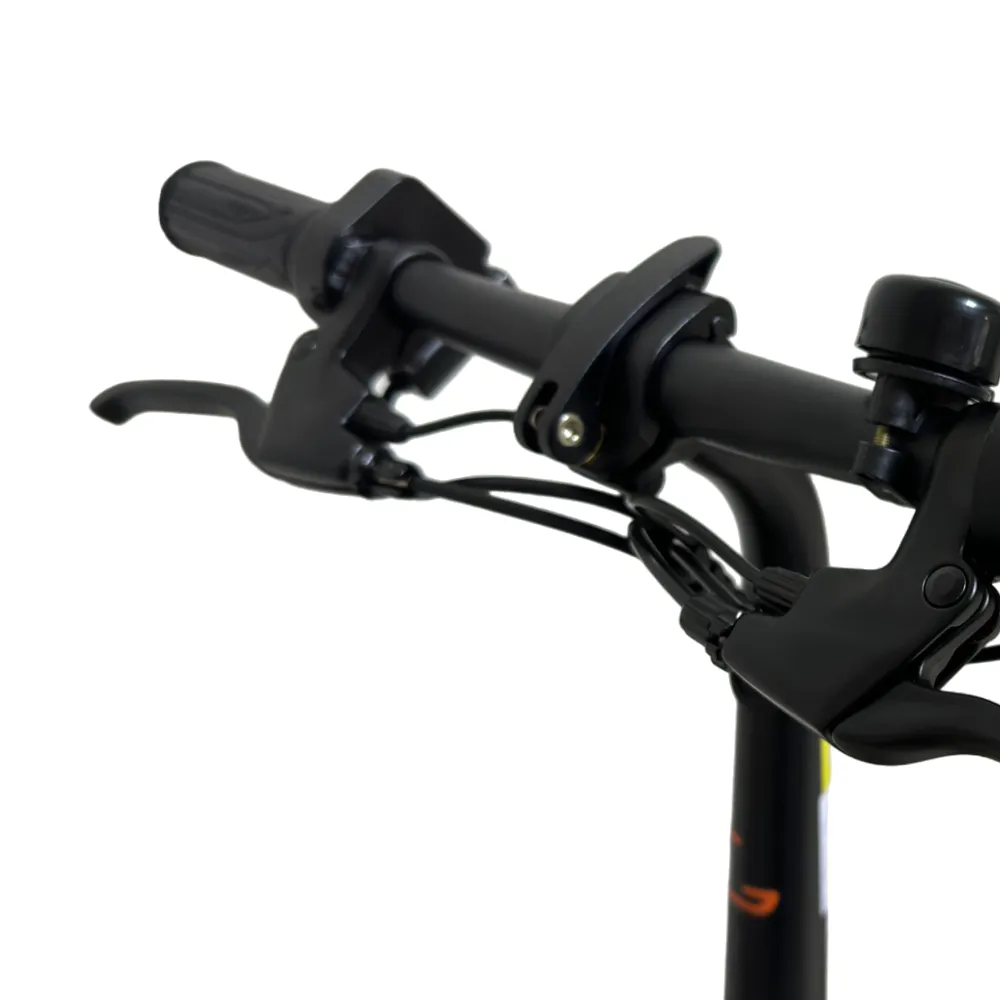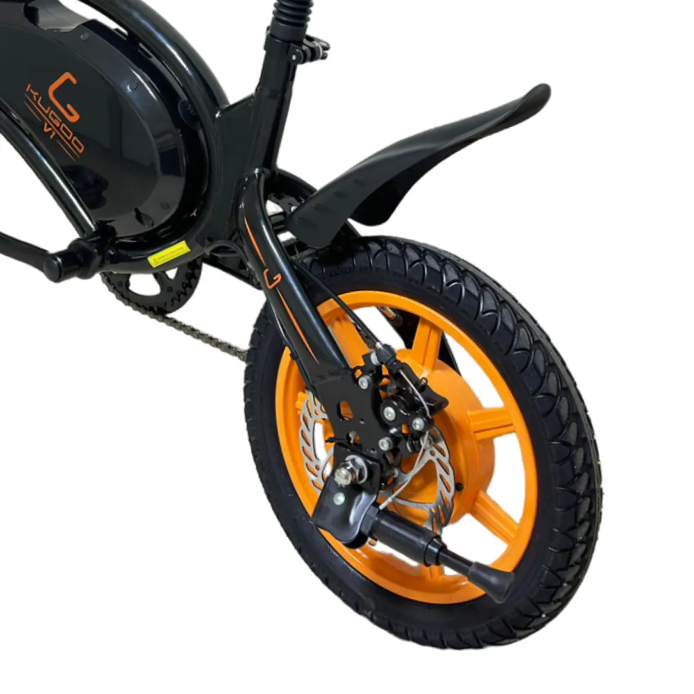 Kugoo Kirin V1 оборудован современными электродвигателем и комплектующими. Мощный 400-ваттный электромотор разгоняет велогибрид до 40 км/ч. Аккумулятор находится в защитном коробе на раме, позади которого расположен порт зарядки под заглушкой. Время полной зарядки батареи – 4 часа, а одного заряда хватает на 35 километров пути. Электродвигатель может работать в режиме поддержки – облегчать кручение педалей – при этом зарядки батареи хватит на более длинное расстояние. Управляется самокат с руля – на нём находятся ручка газа и ручка тормоза. Помимо них на руле расположены громкий звонок и кнопка включения фары, так же находящейся на руле. Эффективные дисковые тормоза просты в обслуживании и способны остановить велосипед в считанные секунды.