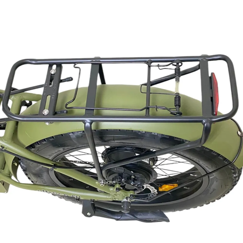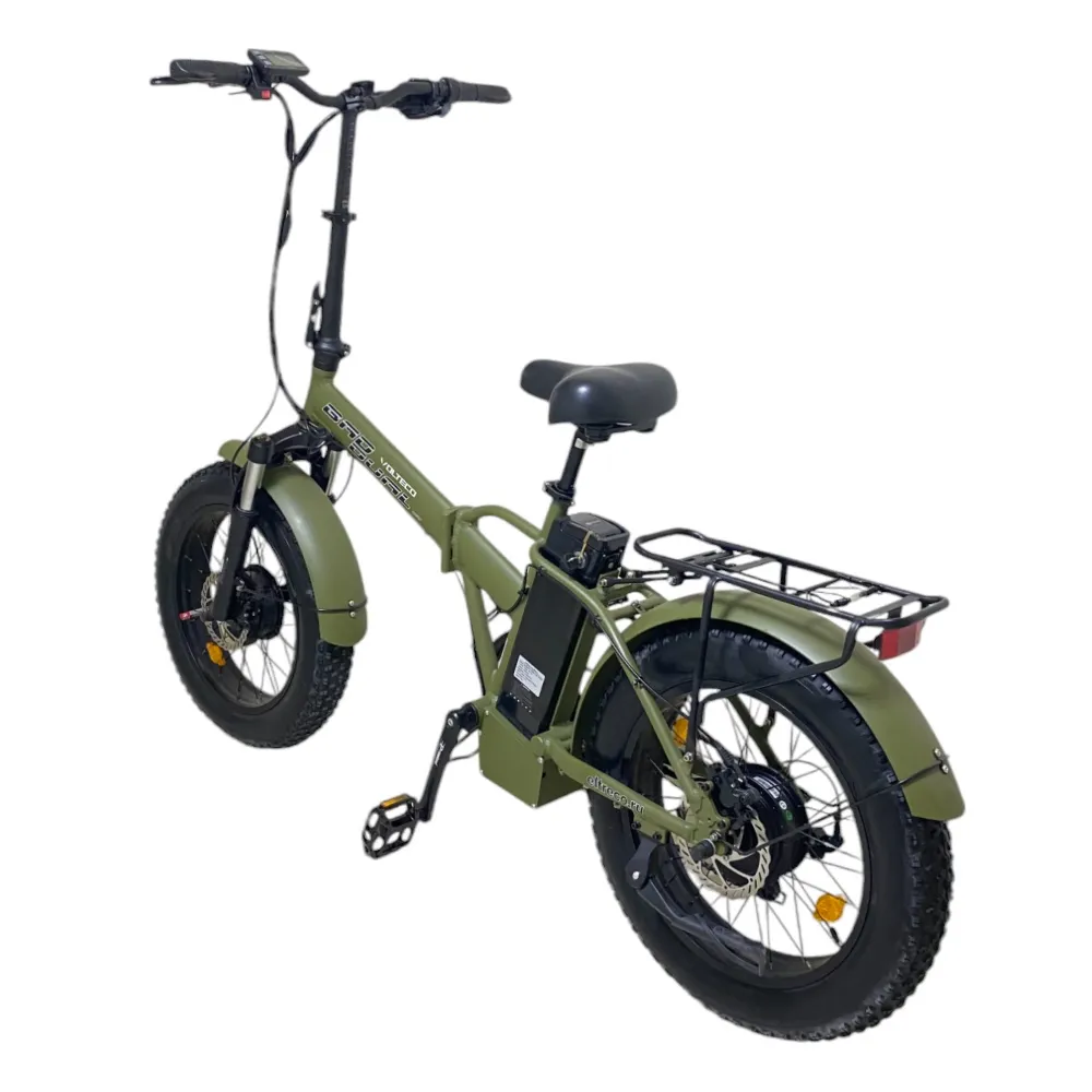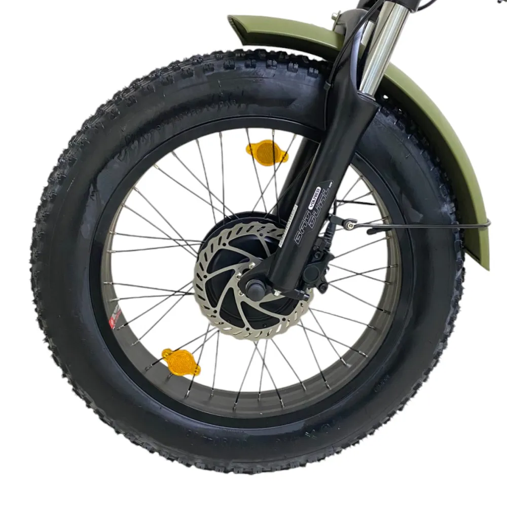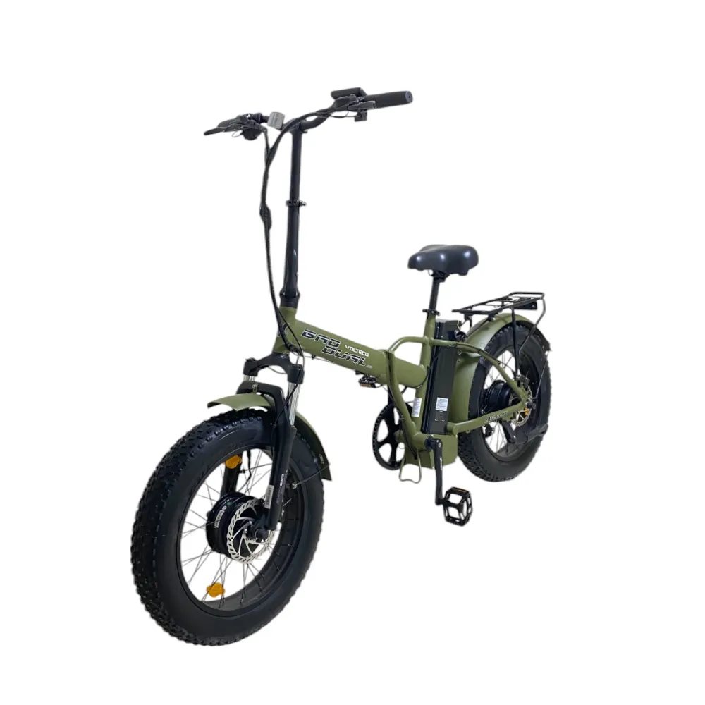 Самый востребованный электробайк модели VOLTECO BAD DUAL NEW в цвете хаки. Завоевал большую популярность среди бюджетных вариантов. Не требует дополнительных денежных затрат на топливо. Работает за счет электродвигателей высокой мощности, позволяет развивать скорость до 45 км в час. Укомплектован хорошими ходовыми характеристиками - одного заряда хватает надолго, можно проехать расстояние  более 50 км.