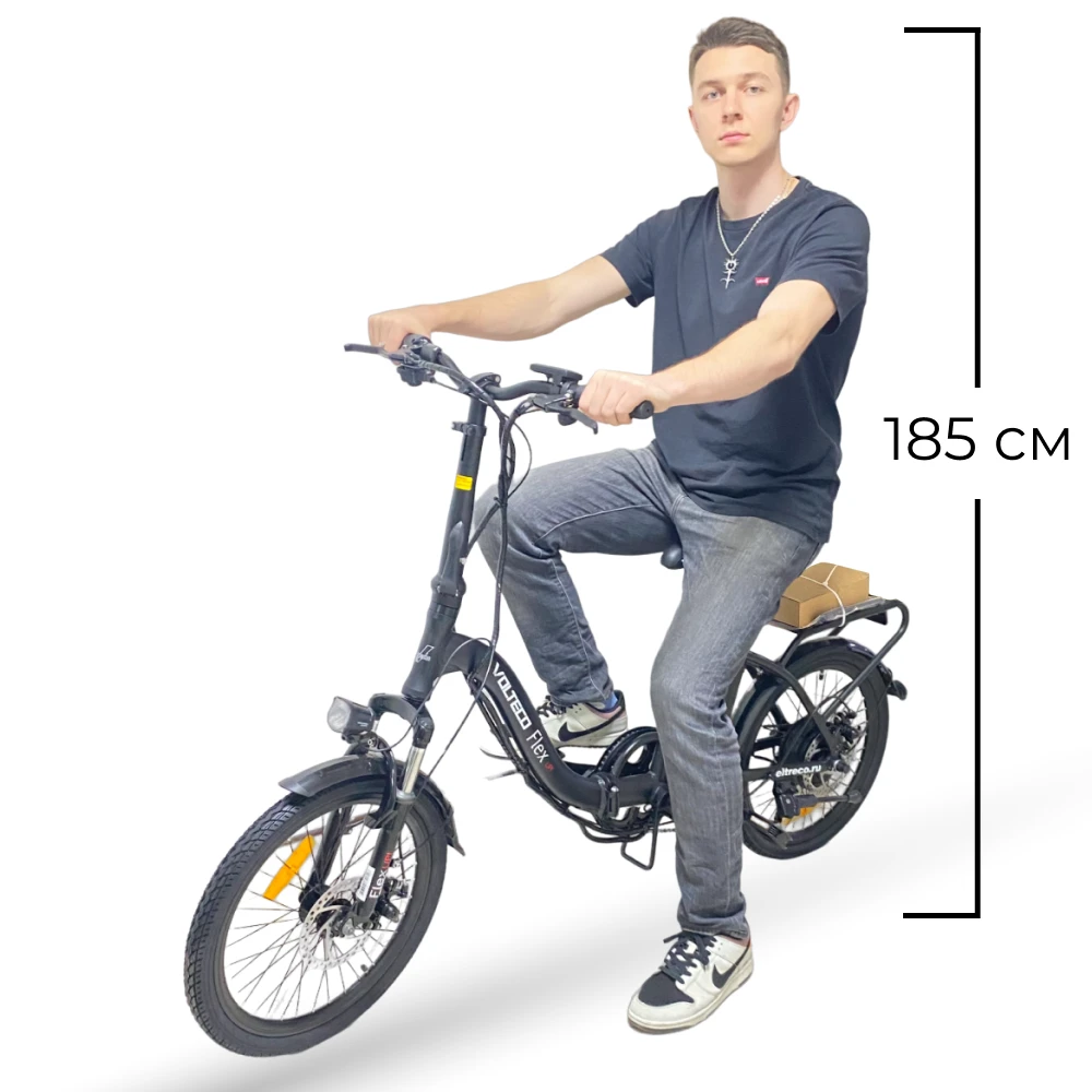 Новинка сезона – компактный и эргономичный Велогибрид VOLTECO FLEX UP в черных цветовых оттенках не зря стал лидером продаж этого месяца. Дизайн модели – универсальный, позволяет ездить на технике разновозрастной категории людей, мужчинам и женщинам. Сравнительно легкий по весу электровелосипед (23,4 кг) позволяет совершать прогулки по городу и в сельской местности. Внушительный запас хода обусловлен наличием качественной АКБ емкостью 12,5Ач Li-ion и напряжением 48В. Из особенностей модели производитель выделяет:
