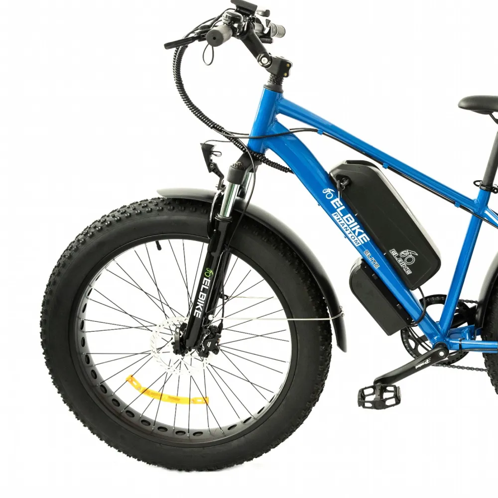 Elbike Phantom Elite синего цвета - это надежный и стильный электровелосипед, который открывает новые возможности для электромобильности и приносит удовольствие от каждой поездки.