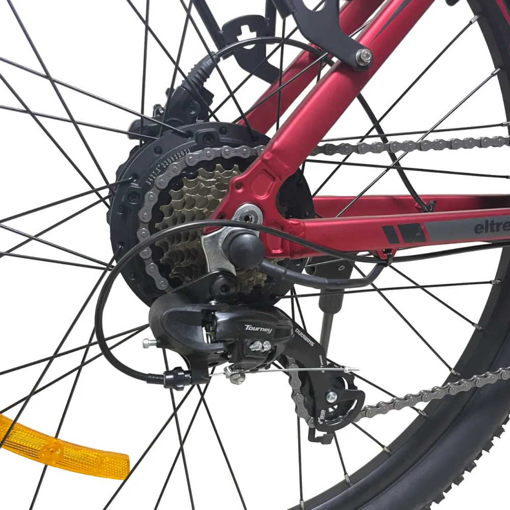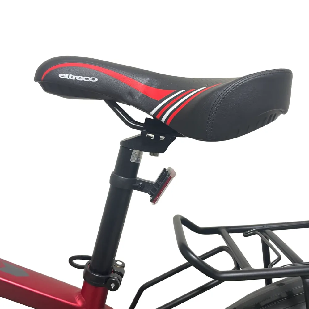 Красный цвет Eltreco XT 850 pro делает его ярким и привлекательным. Этот электровелосипед привлечет внимание окружающих и добавит стиль и индивидуальность к вашим поездкам.