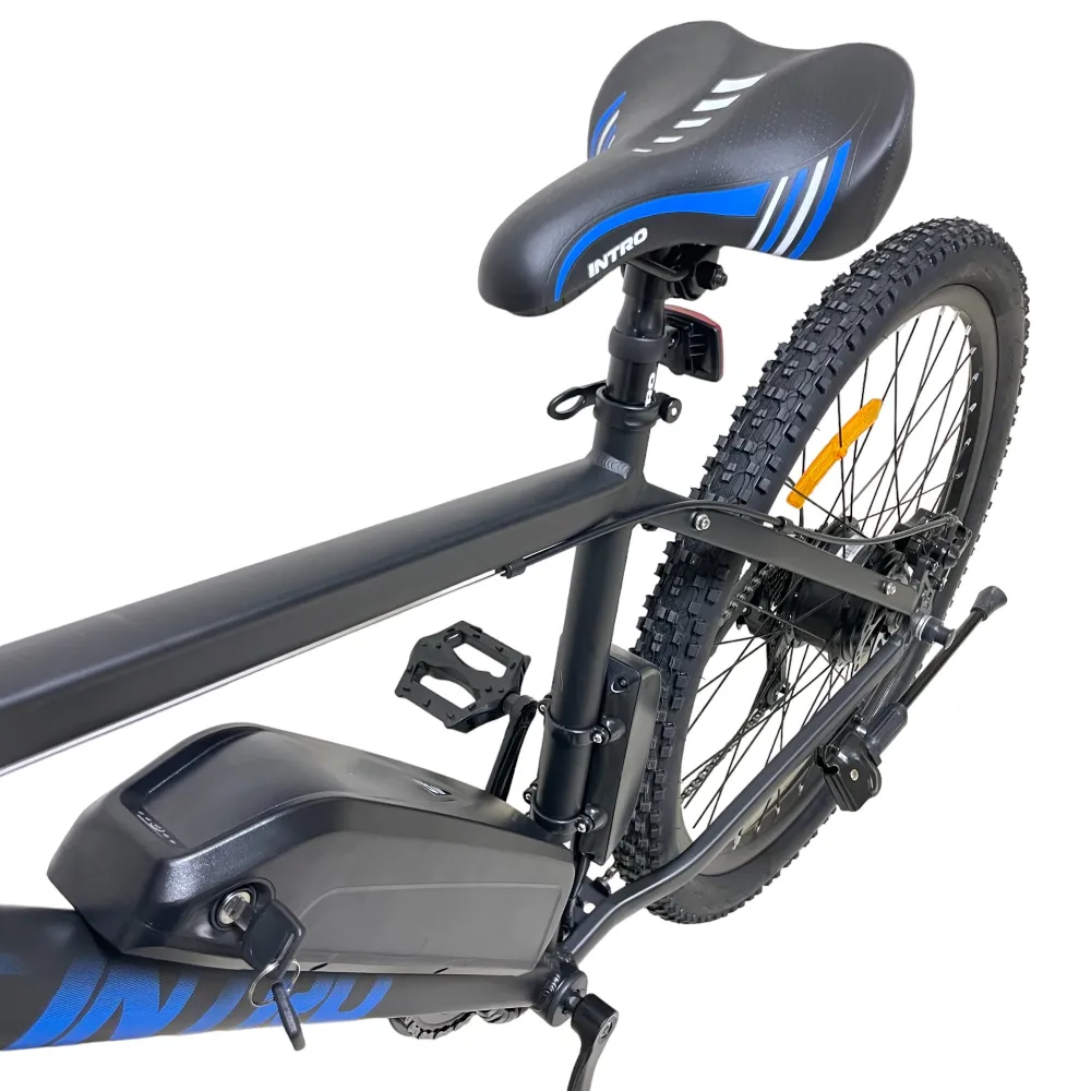 Электровелосипед INTRO Sport черно-синий - это уникальное транспортное средство, которое обеспечит вам комфортную и быструю поездку. С его характеристиками вы сможете покорить дальние расстояния без усилий.