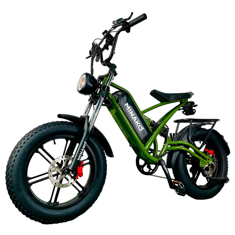 Электровелосипед Minako FOX (15Ah) с литыми дисками в цвете "Хаки" - это идеальный выбор для тех, кто ценит стиль, производительность и надежность.