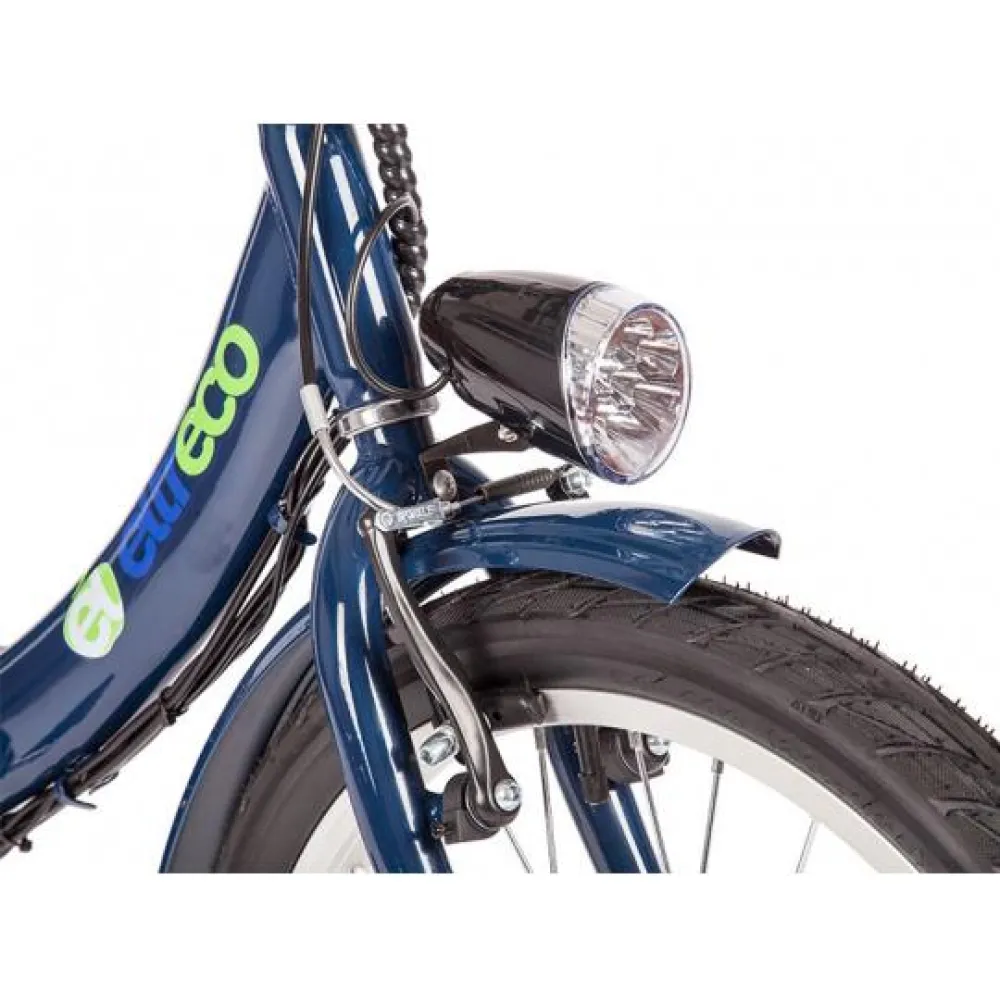 Электровелосипед Eltreco Amigo оснащен усиленным багажником, есть внешнее световое освещение, яркая фара впереди и стоп-сигнал сзади.