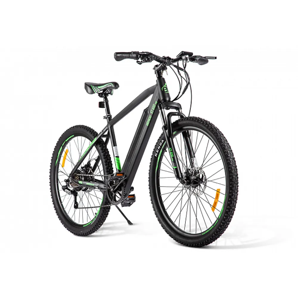 Велогибрид Eltreco XT 600 Pro в черно-зеленом цвете - это надежный и мощный спутник для всех любителей активного отдыха и комфортной езды.