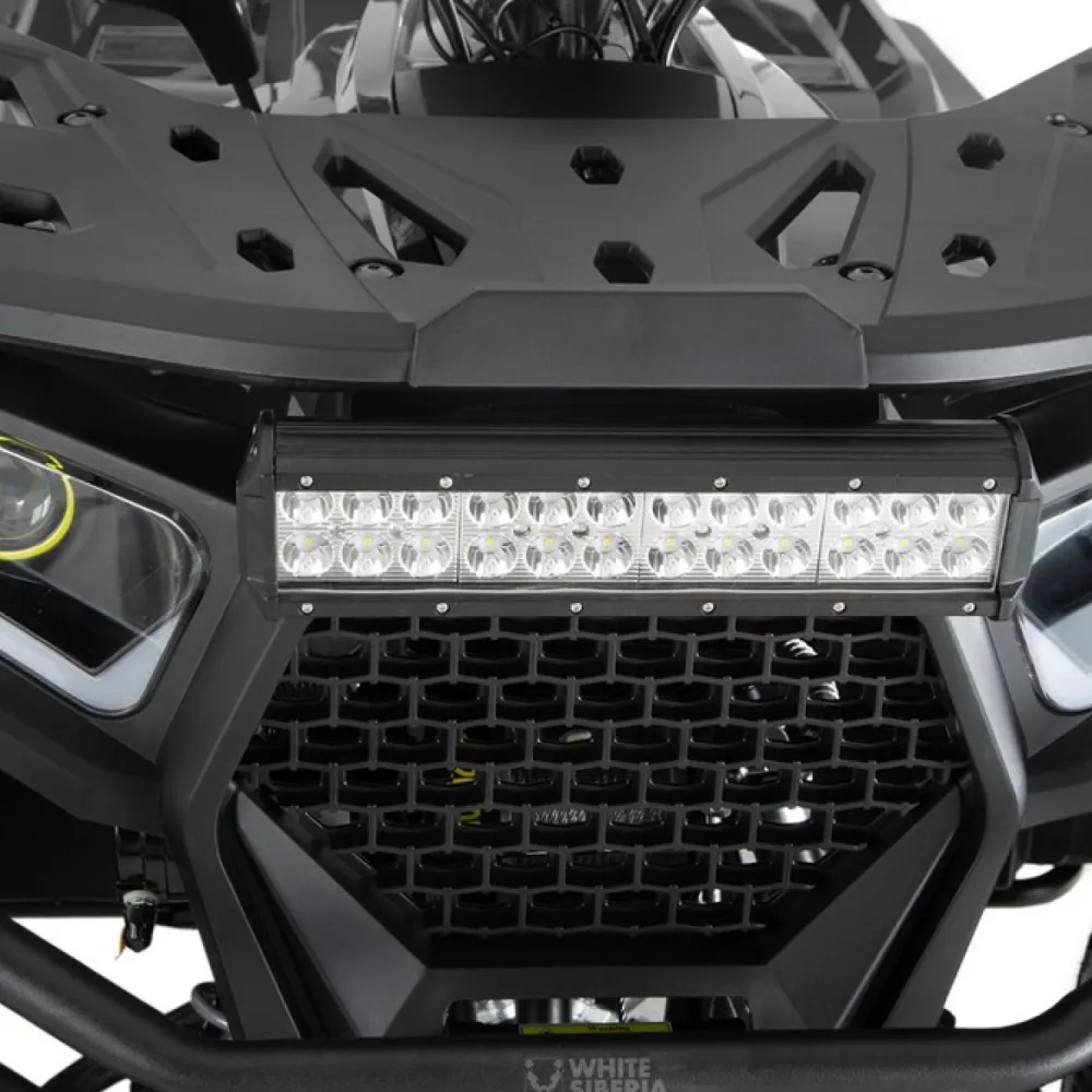 WHITE SIBERIA BARS 200CC PRO оснащен 200-кубовым четырехтактным двигателем мощностью 12 500 Вт (около 17 л.с.) с балансировочным валом, обеспечивающим плавность работы и надежность. Трансмиссия вариаторного типа с передним, нейтральным и задним ходом (F-N-R) упрощает управление и позволяет комфортно передвигаться в самых разных условиях. Модель отличается двухподвесной системой: передняя — 2-х рычажная шаровая, задняя — гидравлический амортизатор с регулировкой жесткости, что обеспечивает плавный ход и устойчивость даже на неровностях. Каркас из стали повышает прочность и долговечность квадроцикла. Среди уникальных решений — подогрев ручек для комфорта в холодное время года и наличие лебедки для самовывоза из трудных мест. Модель получила положительные отзывы за сочетание мощности и плавности хода в своем классе.