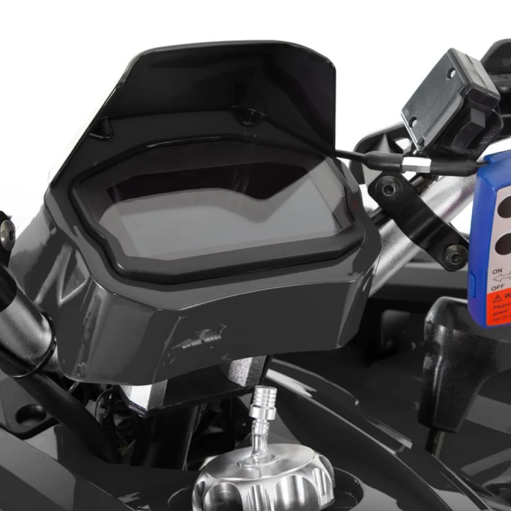 Безопасность обеспечивается дисковыми гидравлическими тормозами, двухподвесной амортизацией, а также защитой рук и зеркалами заднего вида. В базовой комплектации отсутствуют GPS-трекеры и сигнализации, но можно устанавливать дополнительные противоугонные системы. Аккумулятор и двигатель защищены от перегрева и механических повреждений, что снижает риск поломок при экстремальной эксплуатации.