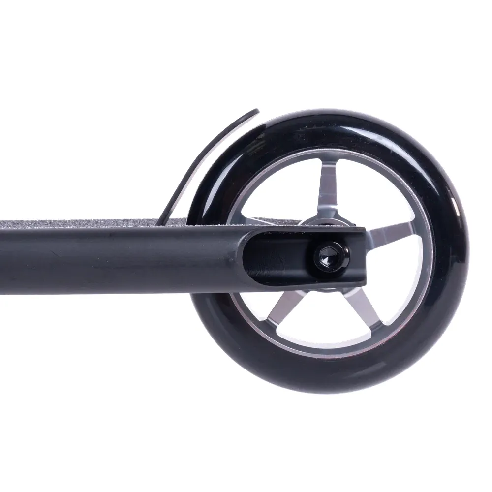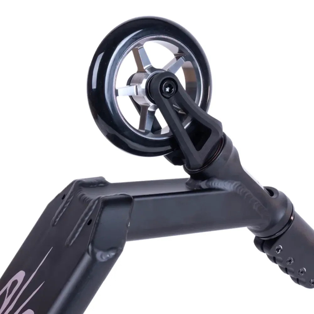 Дека самоката изготовлена из прочного алюминия ALU 6061, что обеспечивает надежность и долговечность. Черный цвет придает самокату стильный и элегантный внешний вид. Колеса изготовлены из полиуретана, обеспечивая отличную амортизацию и плавный ход по различным типам поверхностей.