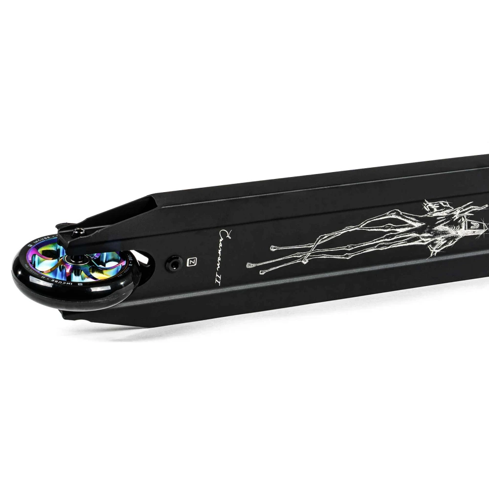 Ethic Erawan V2 (S) neochrome — это не просто трюковой самокат, а настоящее произведение искусства в мире экстрима. Сочетание строгих черных тонов с яркими дисками и хомутом в градиентном цветовом исполнении с эффектом бензина создает уникальный стиль, который привлекает внимание и подчеркивает индивидуальность райдера. Этот самокат весит всего 2.79 кг, что делает его невероятно легким и удобным для выполнения трюков любой сложности.Колеса диаметром 110 мм и высококачественные подшипники класса ABEC 9 обеспечивают плавность и стабильность движения, позволяя райдеру полностью сосредоточиться на выполнении трюков.