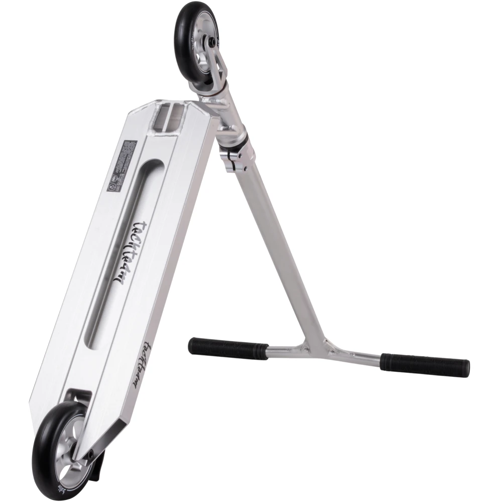 Трюковой самокат tech team Zefir 2023 Черный – лучшее предложение этого года. Модель изготовлена с учетом пожеланий трюкачей. Выглядит стильно, современно. Техническая часть выдерживает максимальные нагрузки без последующей деформации, обещает максимальный разгон и лучшее маневрирование. Приобрести самокат по цене производителя, воспользоваться бесплатной консультационной поддержкой предлагает наш интернет-магазин. Рулевая часть изготовлена из алюминиевого сплава 7003 с термообработкой T6, послушная и прочная, предназначена для выполнения трюков любого класса сложности. Соединяется с декой с помощью компрессии IHC и двухболтовыми зажимами. Прорезиненные грипсы повторяют анатомическое строение руки, увеличивают хват и уверенность пользователя, исключают соскальзывание рук и дискомфорт. Дека размерами 52 смх12 см – нескользящая, обеспечивает максимальную устойчивость стоп при выполнении прыжков. 110мм колеса с алюминиевыми дисками и параметрами жесткости 88А обещают отличный разгон. Приобретение самоката никого не оставит равнодушными, насытит жизнь адреналином, улучшит спортивные результаты. Для заказа самоката по разумной стоимости сейчас предлагаем связаться с менеджером интернет-магазина онлайн или по телефону.