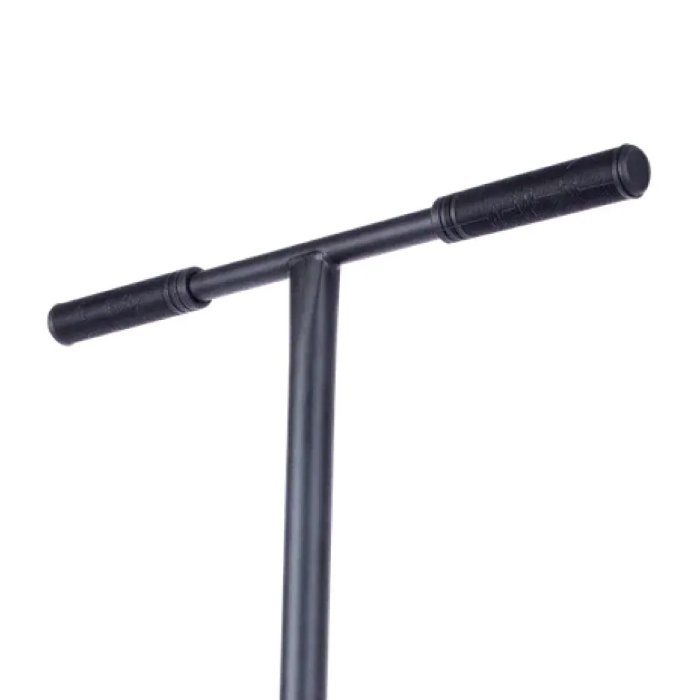 Алюминиевая дека шириной 140 мм и длиной 560 мм, выполнена из алюминиевого сплава высокого качества. Поверхность деки покрыта шкуркой для лучшего сцепления и безопасности катания. Руль, выполненный из стали, обеспечивает надежность и устойчивость при выполнении трюковых элементов. Высота руля - 720 мм, ширина - 580 мм, что идеально подойдет райдерам ростом до 190 см.