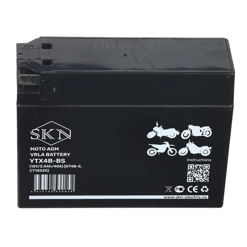 Аккумулятор стартерный для мототехники SKN YTX4B-BS (12V/2,5Ah/40A) [GT4B-5, CT 12025]