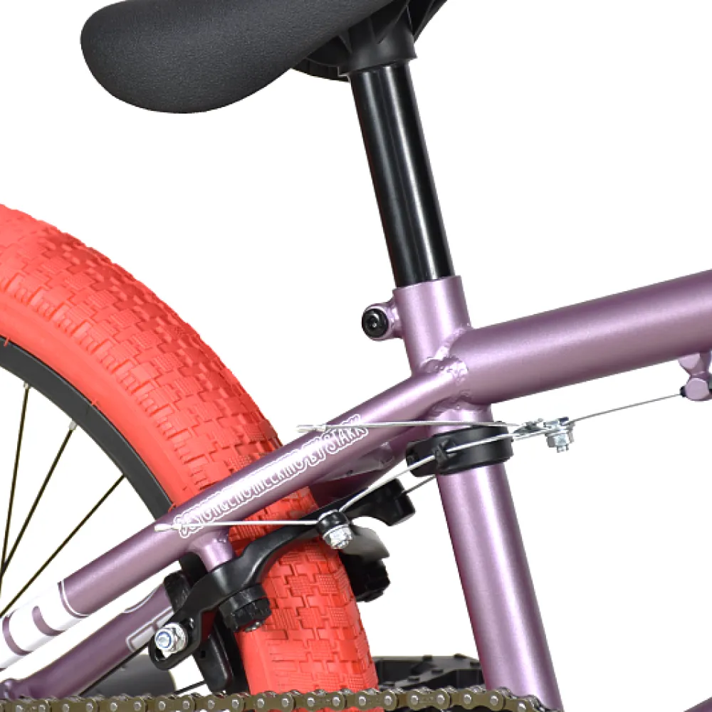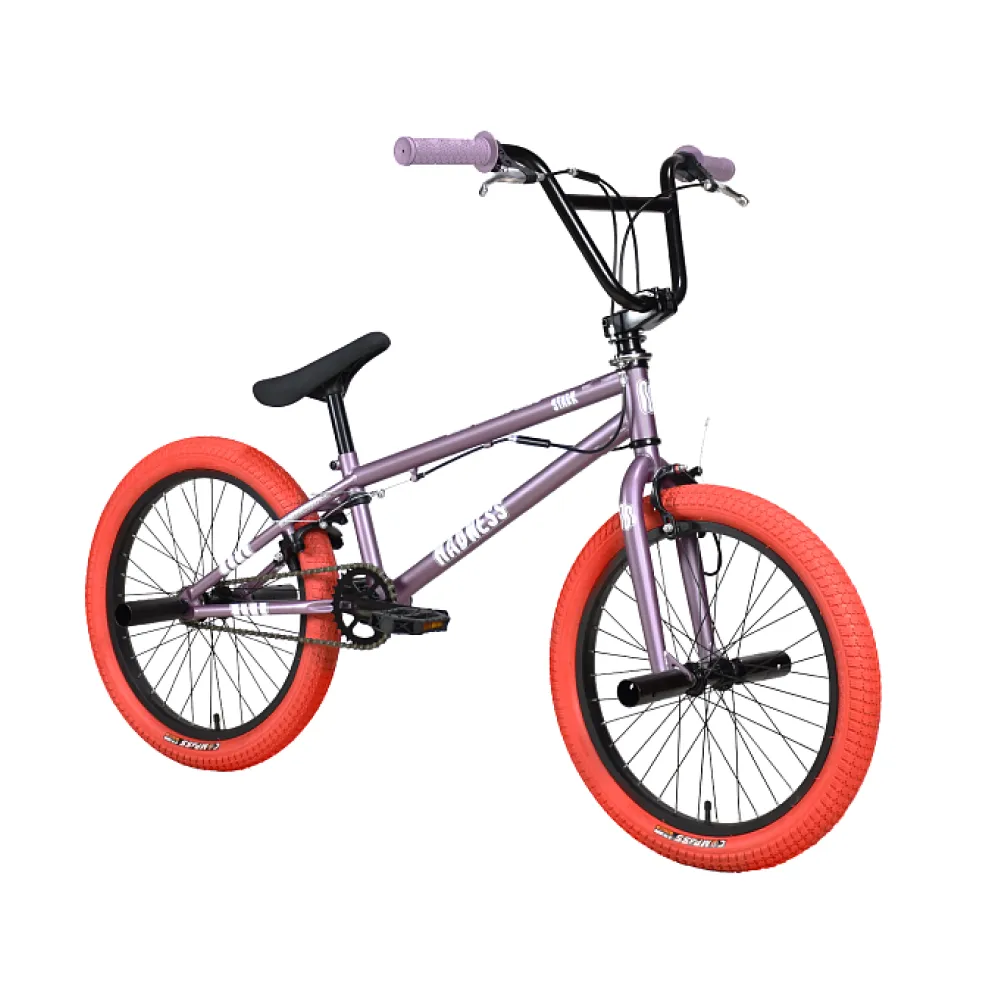 Велосипед BMX Stark Madness 2 2024 года в яркой фиолетово-красной расцветке - это сочетание элегантности и яркости, смелости и стиля. Фиолетовая рама и грипсы великолепно гармонируют с ярко-красными покрышками, создавая неповторимый образ.